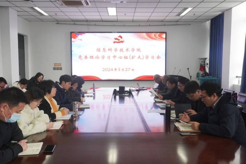 327日上午,学院召开理论学习中心组(扩大)学习会,专题学习习近平总书记在全国两会期间的重要讲话精神和全国两会精神。校智能信息技术研究中心主任袁航、副主任顾云华,学院党委副书记、院长杨永杰,副院长丁卫平,党委副书记、副院长陈馥强及各支部书记参加学习会。会议由院党委书记周平主持。