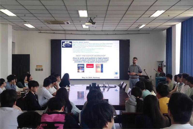 Sandro Nižetić教授详细讲述了如何撰写一篇潜在的、成功的学术论文,选择合适的论文类型和期刊提交。他指出,在撰写论文过程中,要使用合适的参考文献,要注意论文的相似性,尤其要端正科研态度,自觉杜绝剽窃等学术不端行为,要形成正确、合理的推理、方法和结论的撰写以及如何正确处理审查反馈、校对文稿以及论文的展示和推广。他还罗列了成功出版物的案例,并对其产生重大的影响进行了分析。会议中, Sandro Nižetić教授全程用英文进行讲述,与会同学纷纷表示:Sandro Nižetić教授从学术论文的撰写入手,详细讲述了一篇论文从创新点到行文的内容与规范再到后期的投稿与推广,既有理论层面上的学术概念也有实践层面上方法总结,是一场理论深、逻辑严、方法准的科研讲座。