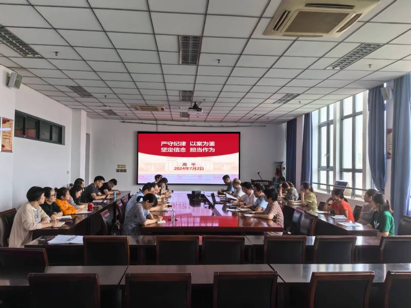 7月2日上午,院党委书记周平讲授党纪学习教育专题党课。学院党委理论学习中心组全体成员、支部书记、院行政及实验中心全体老师参加党课学习。