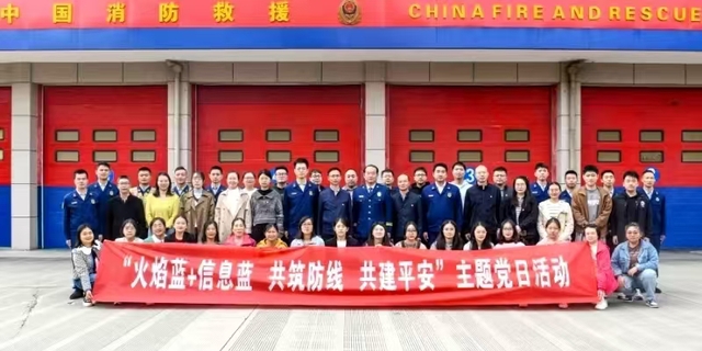 11月8日下午,在第33个全国消防日来临之际,acg导航 党委组织师生赴南通市消防救援支队开展“火焰蓝+信息蓝 共筑防线 共建平安”主题党日活动。南通消防救援支队党委委员、副支队长雍山群,支队机关第一党支部书记、指挥中心主任王贺明,支队机关第一党支部支部委员、信息通信科科长张骥,acg导航 党委书记周平,智能信息技术研究中心主任袁航,智能信息技术研究中心副主任顾云华,acg导航 党委教工第一、四党支部,研究生第三党支部党员参加此次活动。