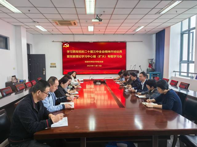 11月13日下午,acg导航 党委召开学习贯彻党的二十届三中全会精神开班动员暨党委理论学习中心组(扩大)学习会。院党委副书记、副院长陈馥强,各系负责人、支部书记,acg导航 、智能信息技术研究中心科级干部参加会议。院党委书记周平主持会议。