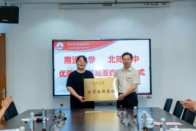 为进一步加强高校和高中协同育人,吸引更多优质生源,打造优质生源基地,6月25日下午,我校与常州市北郊高级中学举行优质生源基地签约授牌仪式。校党委常委、副校长施佺参加活动,并向北郊高级中学授牌。常州市北郊高级中学校长刘莹、副校长沈臻、党政办公室主任钱志栋,acg导航 党委副书记、院长杨永杰,学院党委书记周平,学院党委副书记、副院长陈馥强出席仪式。仪式由我校校友、常州市北郊高级中学党政办公室副主任印清主持。