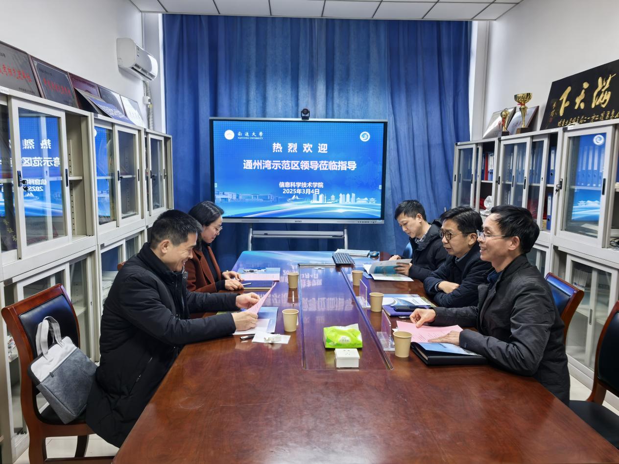 杨永杰代表学院对石星恺一行表示欢迎,并介绍了学院学科特色及发展现状。石星恺介绍了通州湾示范区的基本情况,他希望能够发挥acg导航 信息与通信学科特色和科研平台,利用沿海开发区的地域和政策优势,进一步拓宽合作领域,尝试在产学研合作等多方面开展合作。