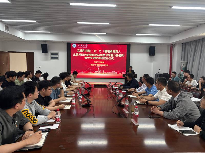 陈馥强宣读了《关于成立acg导航 “E脉相承”通大校史宣讲团的通知》,介绍了宣讲团成立的背景、意义。他指出,宣讲团将依托校史资源、学院“信息蓝”文化育人体系与专业优势,探索“党建+校史+专业”三位一体的文化育人模式。