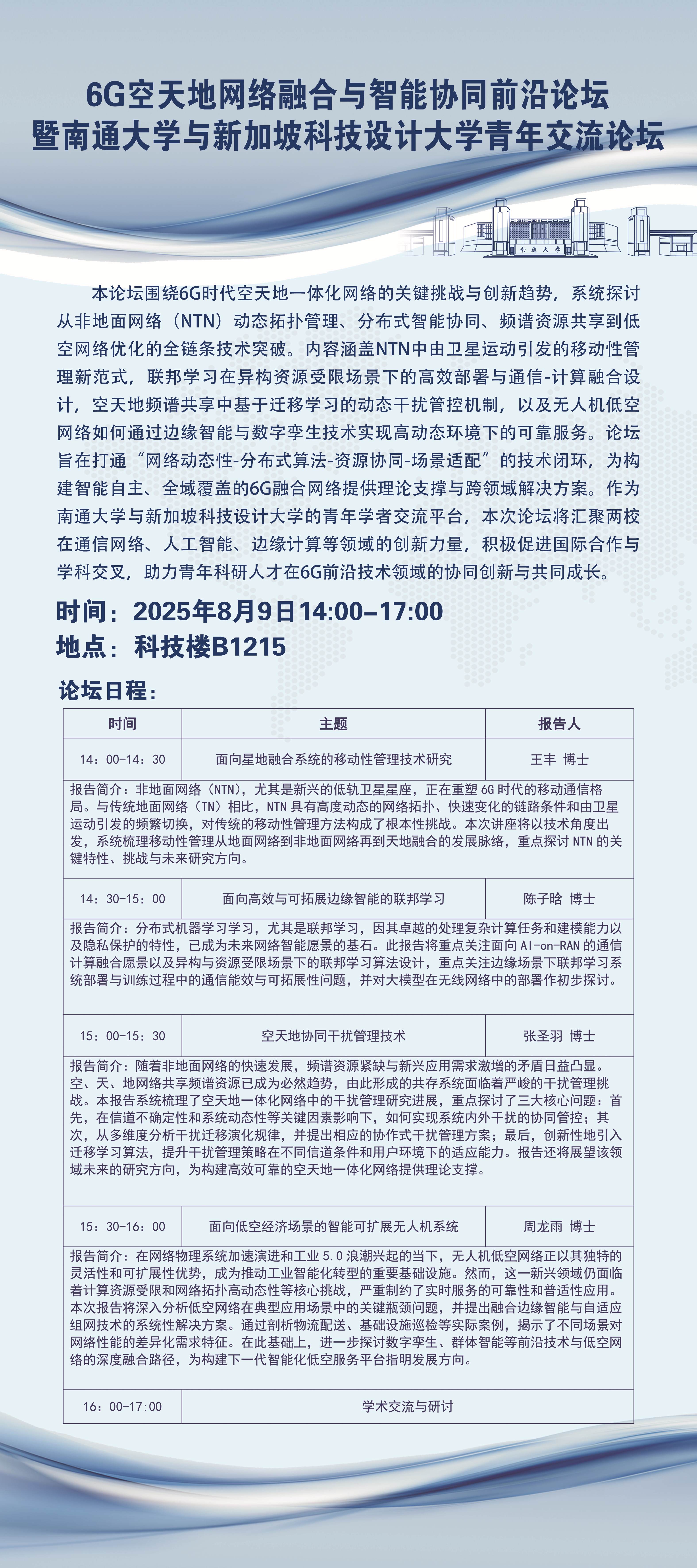 活动预告:6G空天地网络融合与智能协同前沿论坛暨acg导航 与新加坡科技设计大学青年交流论坛