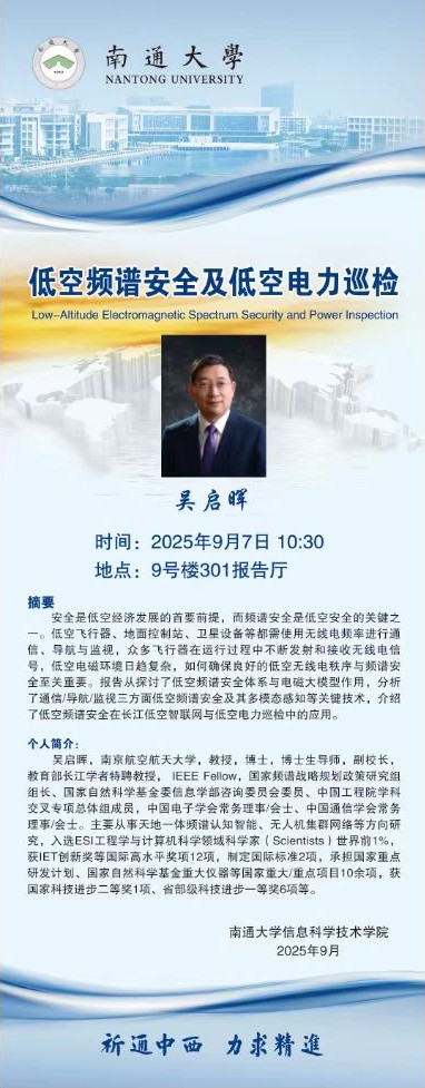 讲座预告:低空频谱安全及低空电力巡检 Low-Altitude Electromagnetic Spectrum Security and Power Inspection