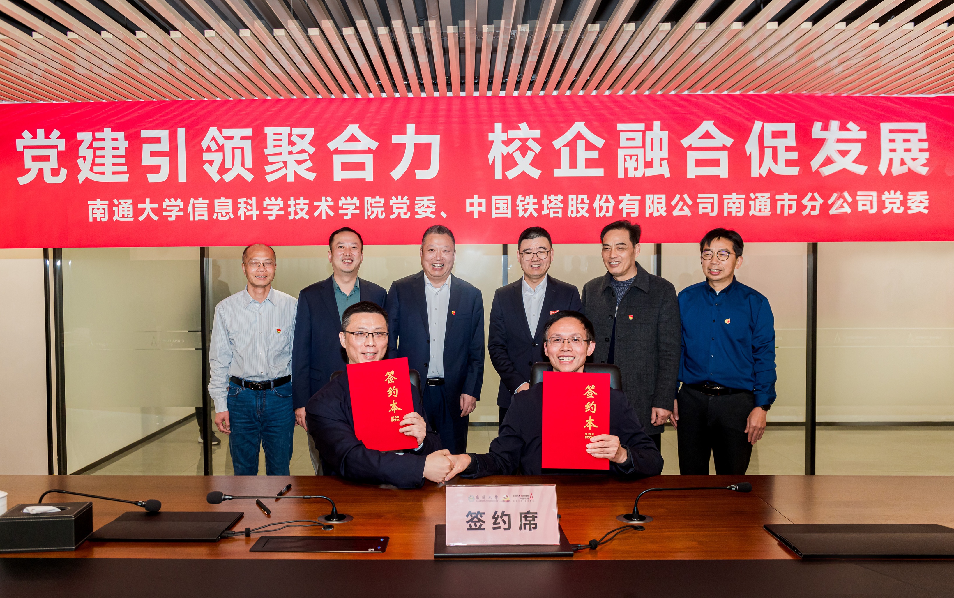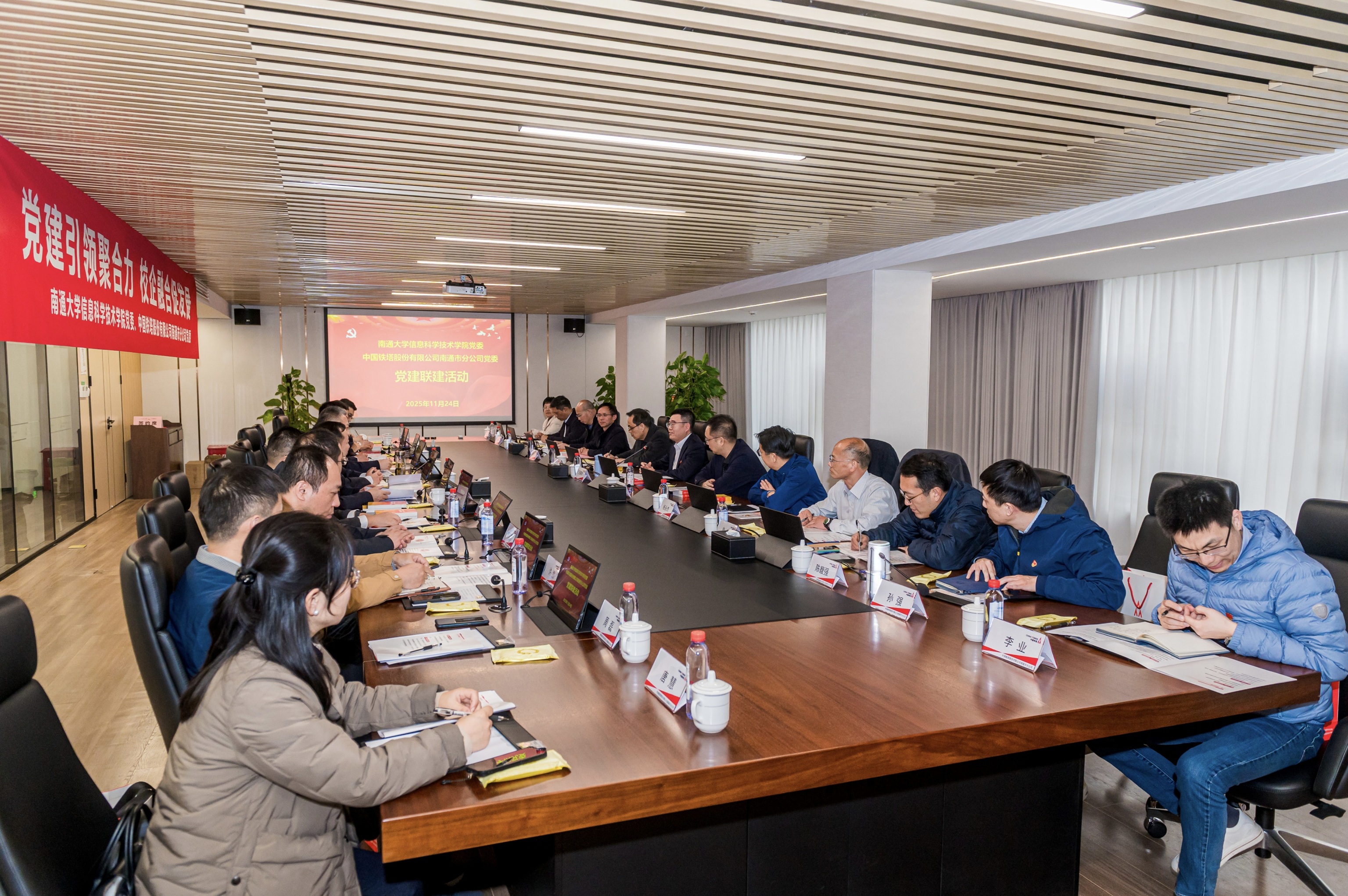 王建浦代表acg导航 ,向中国铁塔股份有限公司南通市分公司的热情接待表示感谢,向双方长期以来在网络通信建设、科研合作和人才培养等方面取得的积极成果表示祝贺。王建浦指出,中国铁塔是我国移动通信基础设施建设的主力军,拥有丰富的行业经验和技术积累,与我校在人才培养、科技创新等方面有着广泛的合作空间和共同的发展愿景。acg导航 党委与中国铁塔股份有限公司南通市分公司党委开展党建共建,并围绕加快高水平科技自立自强,引领发展新质生产力开展理论联学,既是政治学习的深化,也是校企合作的再升级,更是共谋新质生产力的务实之举。王建浦就推动深化双方合作提出四点要求:一、强化党建引领,把牢共进方向。必须始终将坚持和加强党的全面领导贯穿于合作的全过程、各环节,将党的政治优势、组织优势转化为推动校企协同发展、服务国家战略的强大动力。二、锚定新质生产力,抢抓战略机遇。聚焦南通新质生产力领域,加强科研攻关和技术转化,推动校企资源同频发展。三、推动资源互补,构建协同格局。通过共建科研平台、共育人才和共助地方发展,实现校企资源、智慧和力量的协同互补。四、坚持真学实干,健全长效机制。将理论学习与科研、人才培养和社会服务深度融合,推动党建联建从一次性活动走向长期合作的机制。