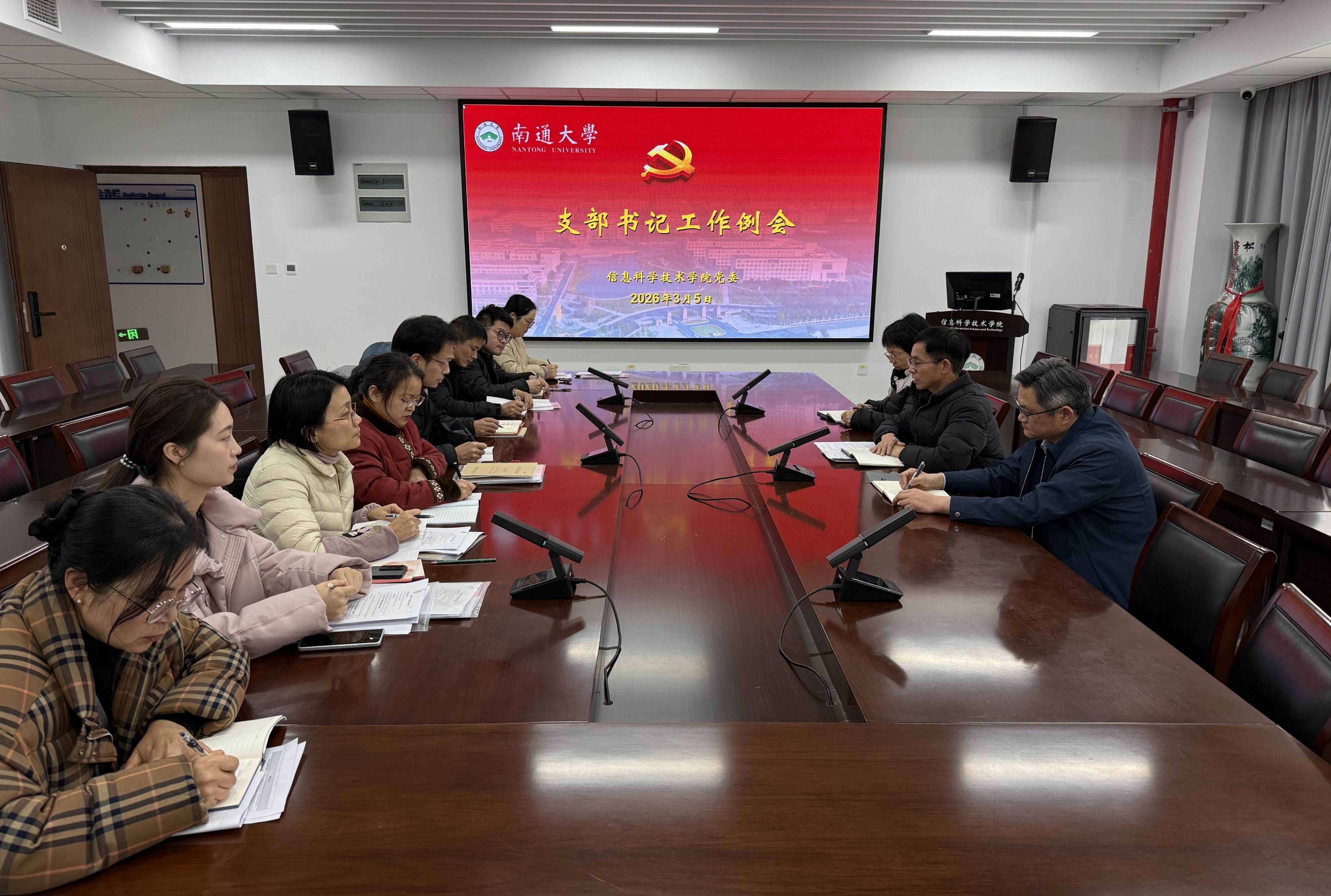 3月5日上午,acg导航 党委召开2026年第一次党支部书记例会。总结2025年党建工作,部署2026年党建重点任务。院党委书记周平主持会议,院党委副书记、副院长刘俊,院党委纪检委员沈晓燕,院党委兼职组织员及全体党支部书记参加会议。